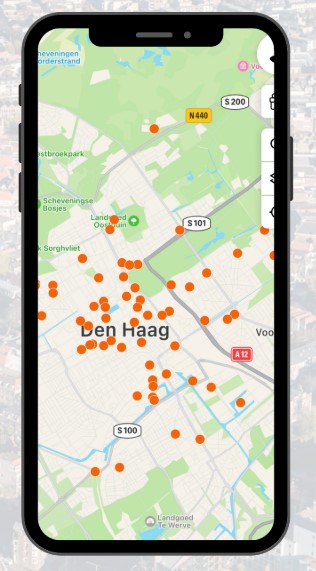 De oranje deelfietsen van DoneyRepublic staan verspreid over de stad. In de app vind je een overzicht van alle beschikbare deelfietsen. Zoom in op de kaart om de locatie van een deelfiets te vinden. Er staan geregeld meerdere deelfietsen op loopafstand van elkaar.