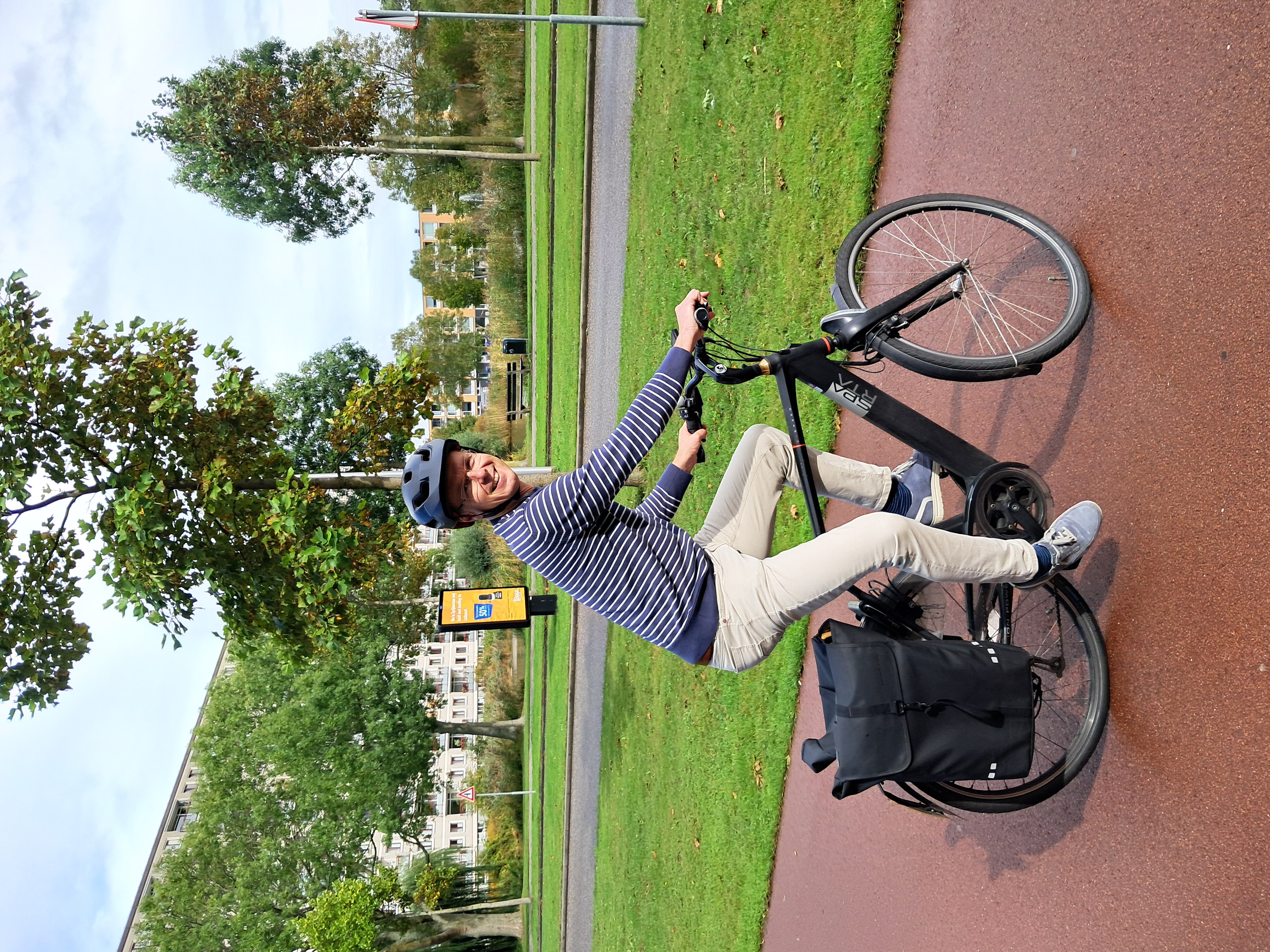 Ook Jeroen ontdekte de waarde van vaker fietsen. Hij werkt in Rotterdam en Schiedam en wisselt af tussen auto, metro en fiets als vervoermiddel naar zijn werk. Met zijn speed pedelec zijn de afstanden prima te overbruggen. “Twintig kilometer is het, in veertig minuten ben ik er. Sneller dan met de auto, zeker in de spits. En ik kom vrolijk en uitgewaaid aan.”