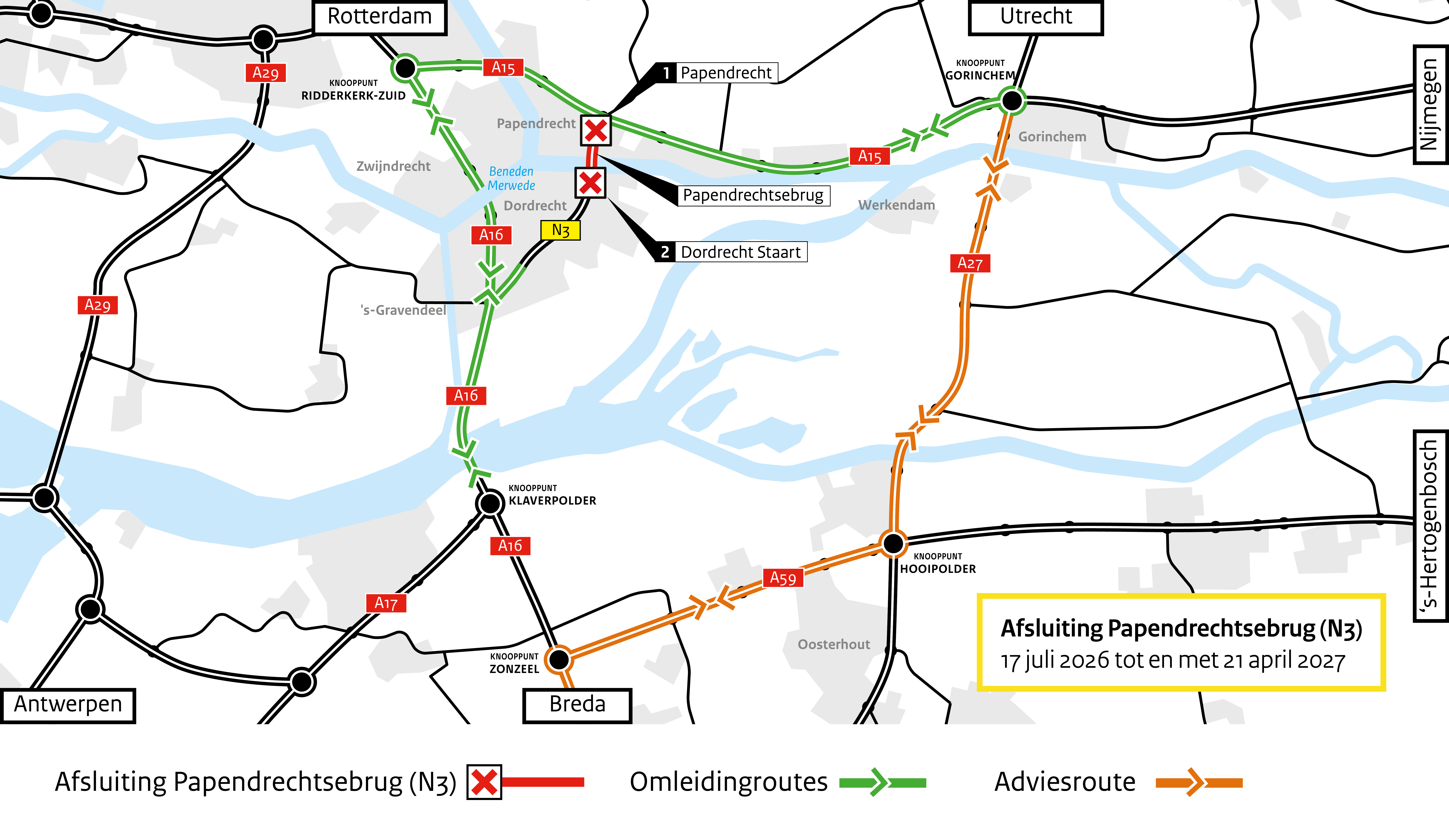 Omleidingskaart Papendrechtsebrug wegverkeer